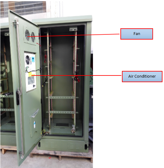 4.1 Air Conditioner and fans are installed on the door of the cabinet.