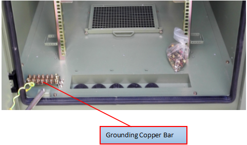 (3)Protective earthing of other equipments inside the cabinet should be connected to the grounding bar.