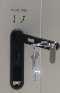 The cabinet door adopts embedded structure. The door opening angle is more than 110°and the door threshold device can limit the opening angle. The lock is anti-theft three point lock, supporting padlock. Each cabinet door is equipped with an open door sensor, working with the environmental monitoring unit.